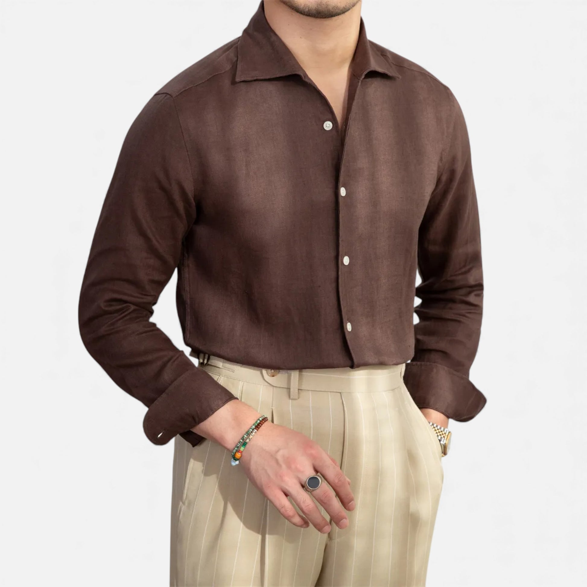 Your wardrobe yearns for a piece that quietly speaks of legacy — this Morani Oxford cotton shirt, with its refined one-piece Italian collar and slim silhouette, offers just that. Imagine slipping into it: the soft, breathable cotton cocoons you in effortless elegance, while the long sleeves and structured collar lend a timeless, dignified poise.