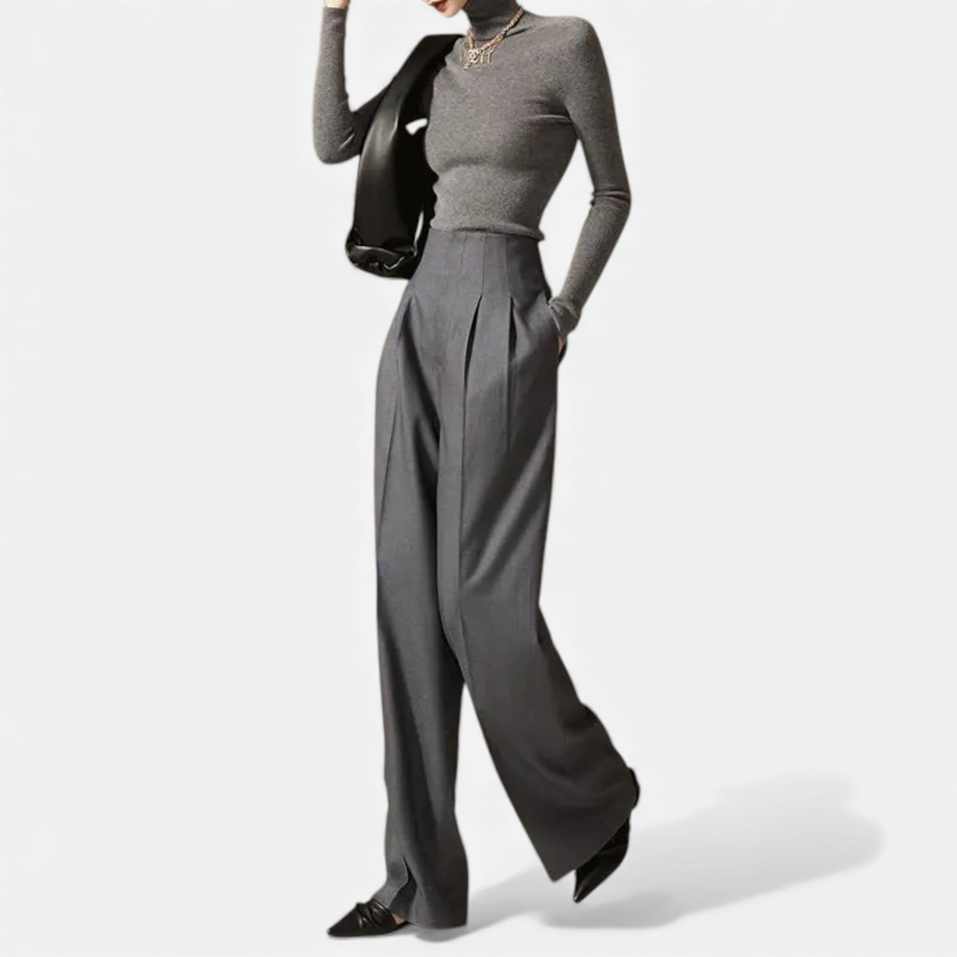 Step into effortless refinement with these high-waist draped trousers, crafted to bring graceful movement and timeless elegance into your wardrobe. The fluid wide-leg cut skims the body with a soft, elongated line, allowing your style to feel polished, understated, and confidently elevated. Imagine your everyday moments transformed, where every step feels aligned with the quiet confidence of old-world sophistication.