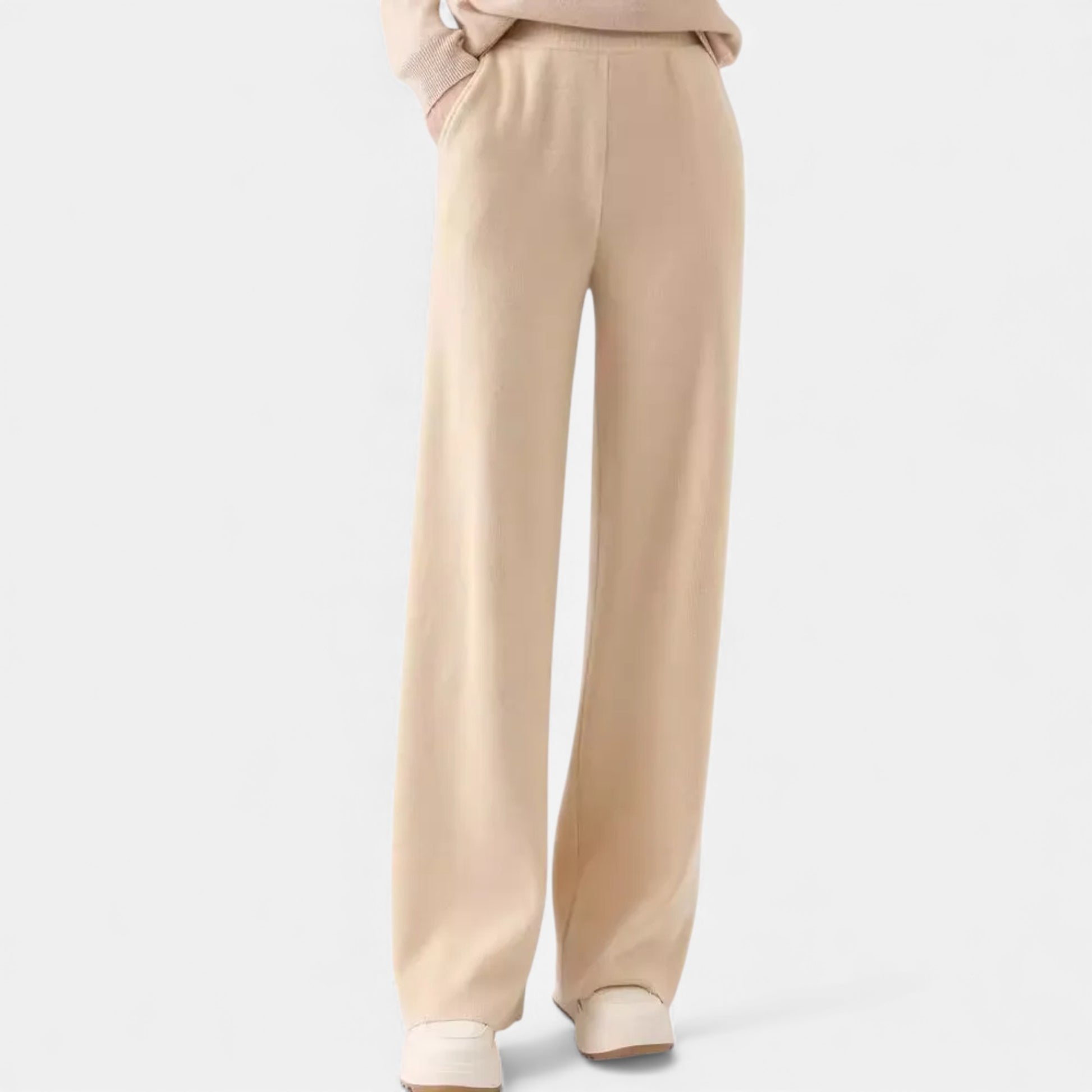 Whether you are navigating your morning in a sunlit study or winding down by the fireside, these knitted trousers adapt seamlessly to your rhythm. Their thickened construction provides warmth without bulk, while the wide-leg cut offers graceful movement. Classic yet contemporary, they evoke the refined ease of Ivy-League lounging, all contained in a piece that speaks softly of your refined sensibility.