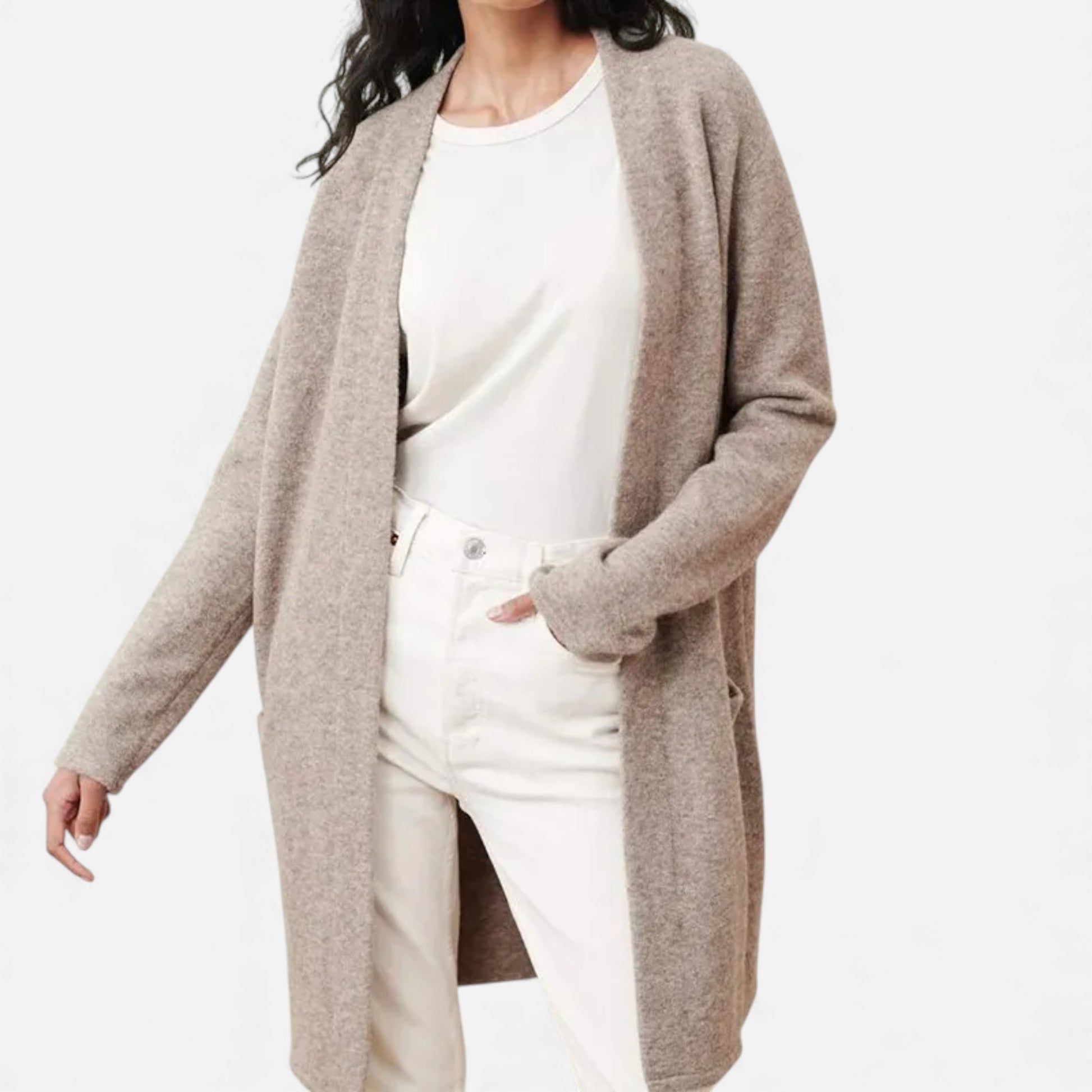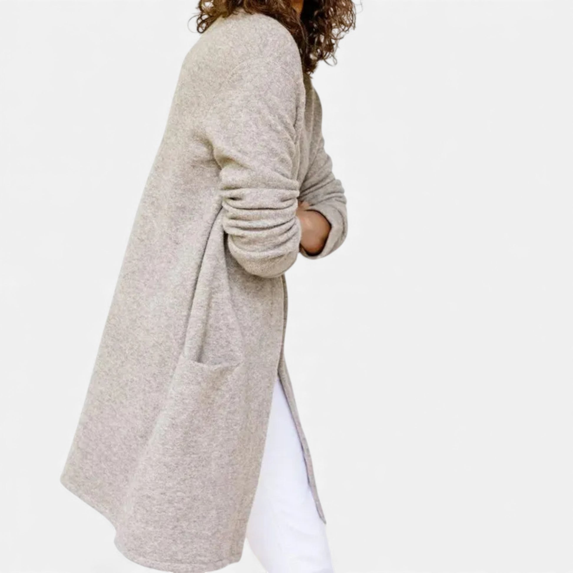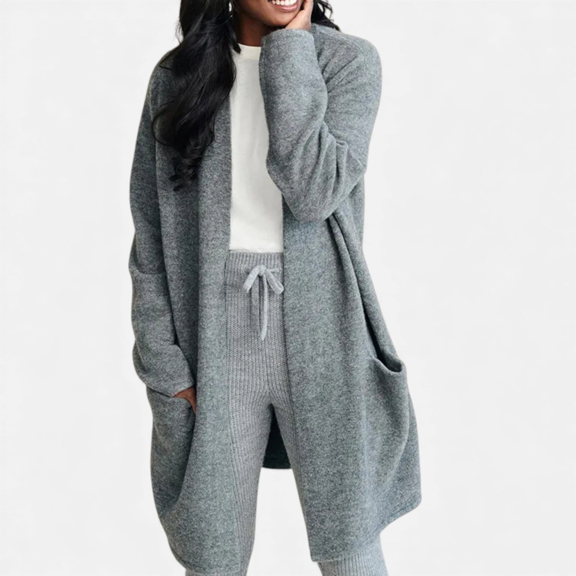 - Structured yet flexible knit design — combines blazer silhouette with cardigan comfort